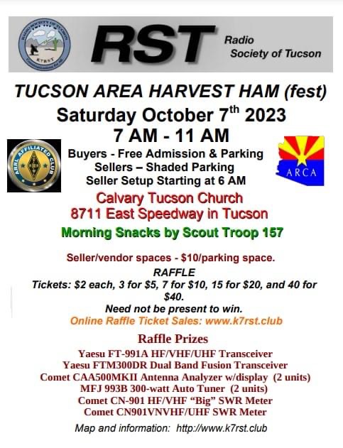 Raffle Tickets - $2 each, 3 for $5, 7 for $10, 15 for $20 and 40 for $40. NEED NOT BE PRESENT TO WIN. Online Raffle Ticket Sales: www.k7rst.club